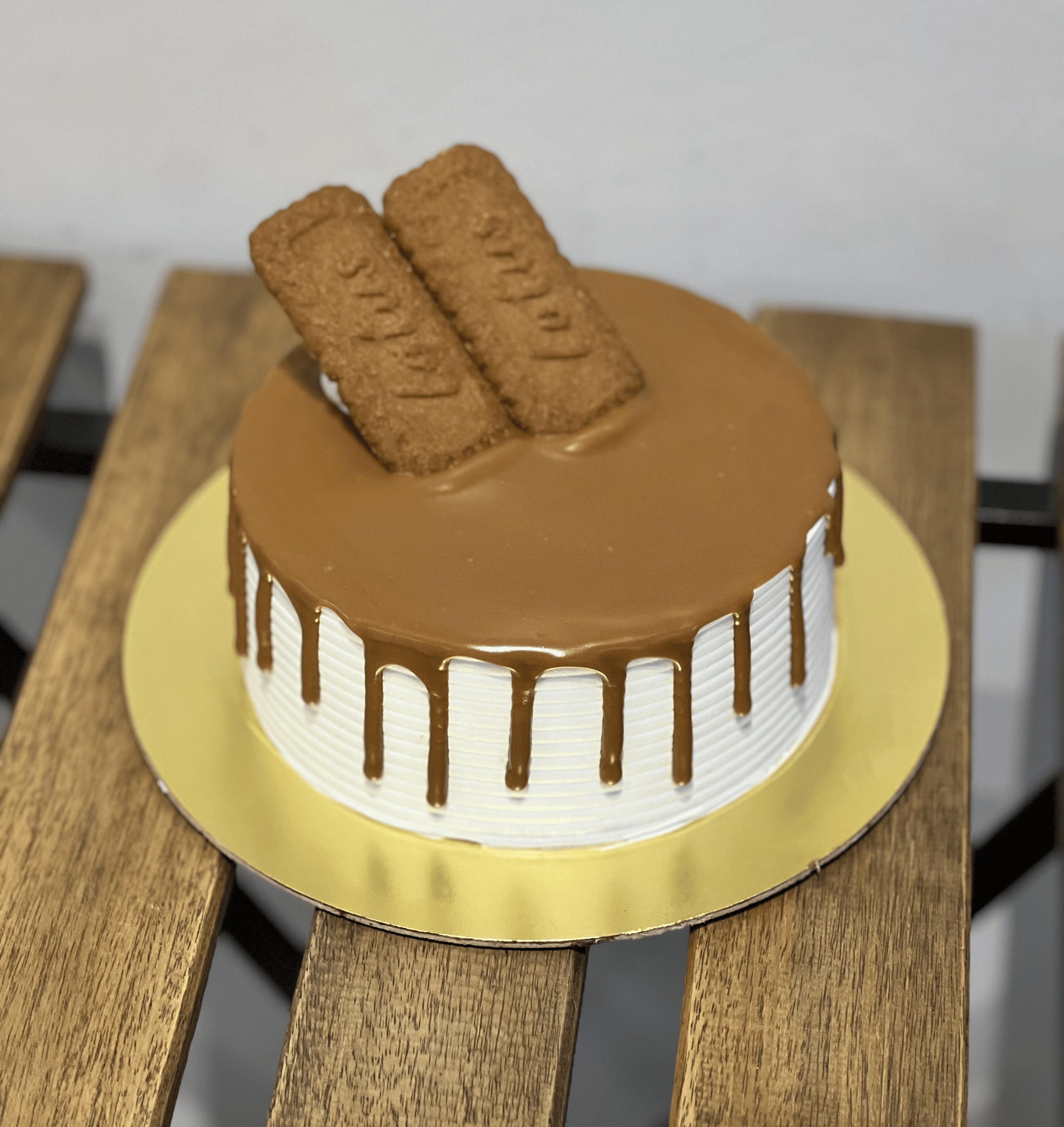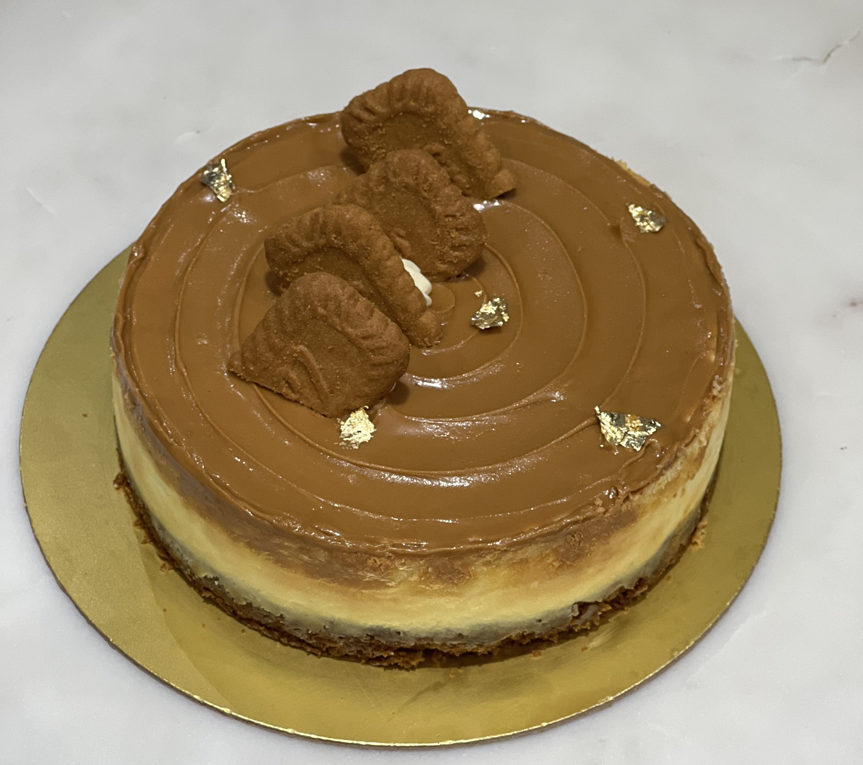 Layers of vanilla cake, Biscoff spread, Biscoff biscuit crumbs, and mascarpone cream.