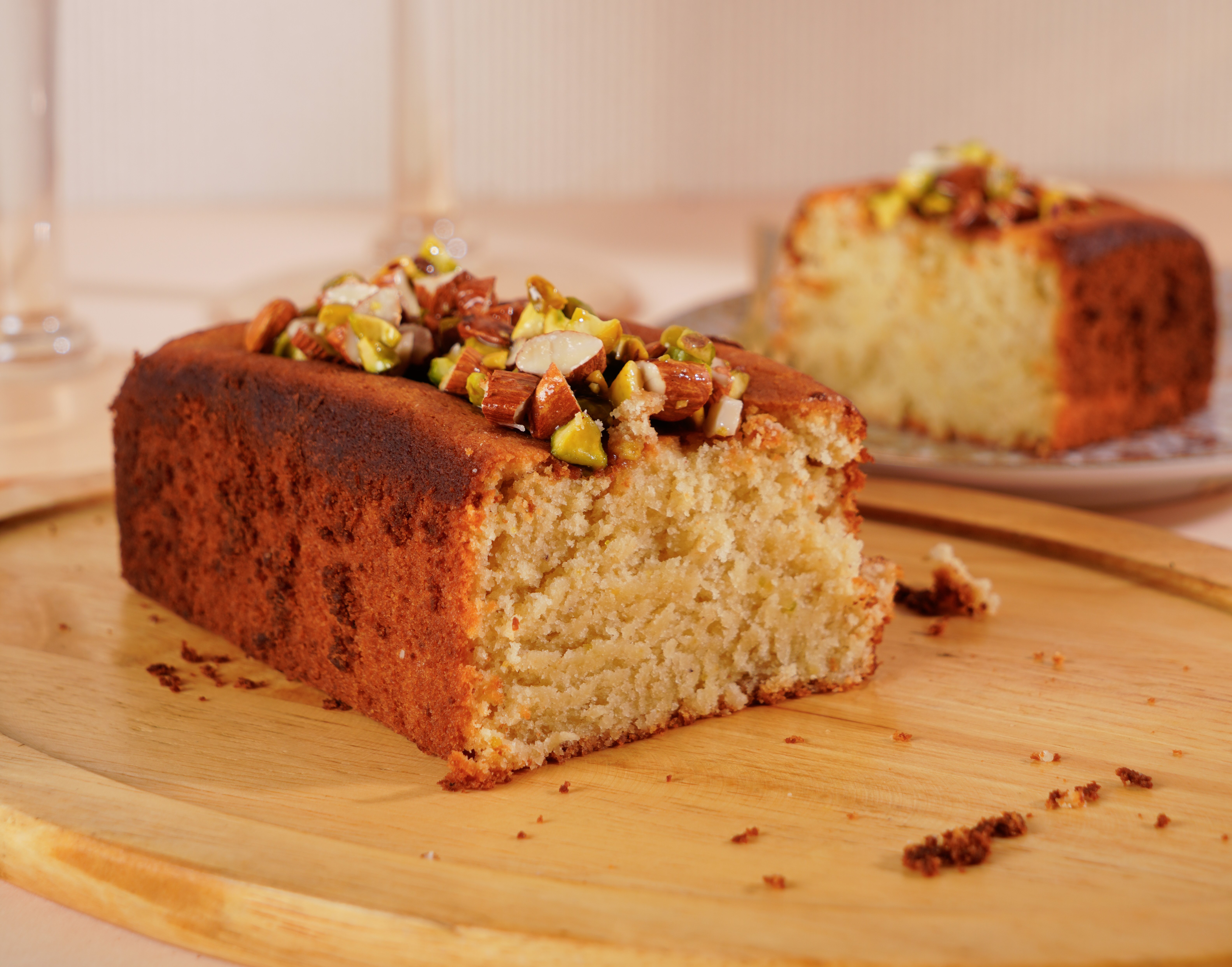 Moist & Rich Orange Pistachio cake in a loaf baked to perfection.