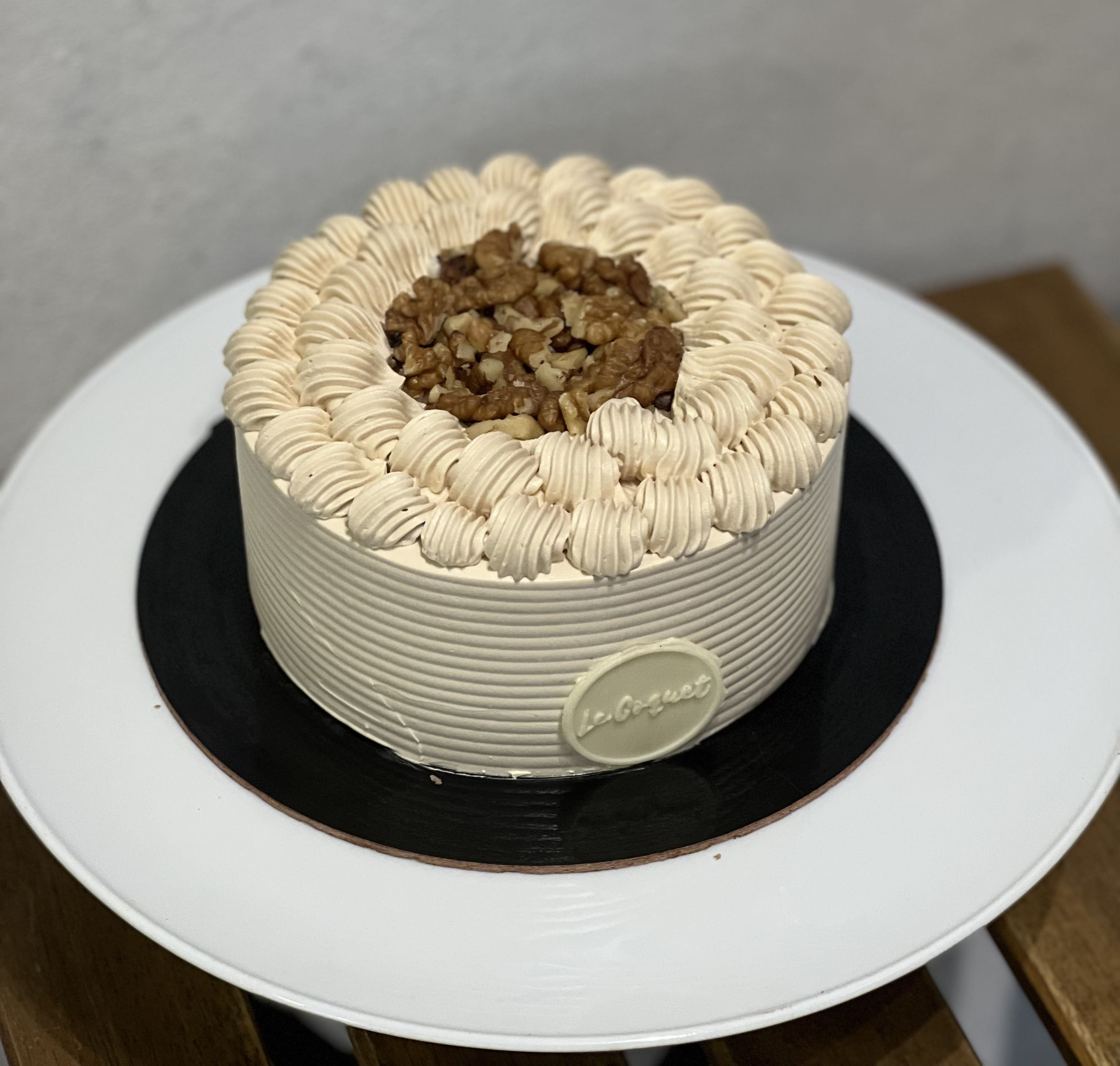Espresso-soaked cake paired with coffee cream and crunchy walnuts.