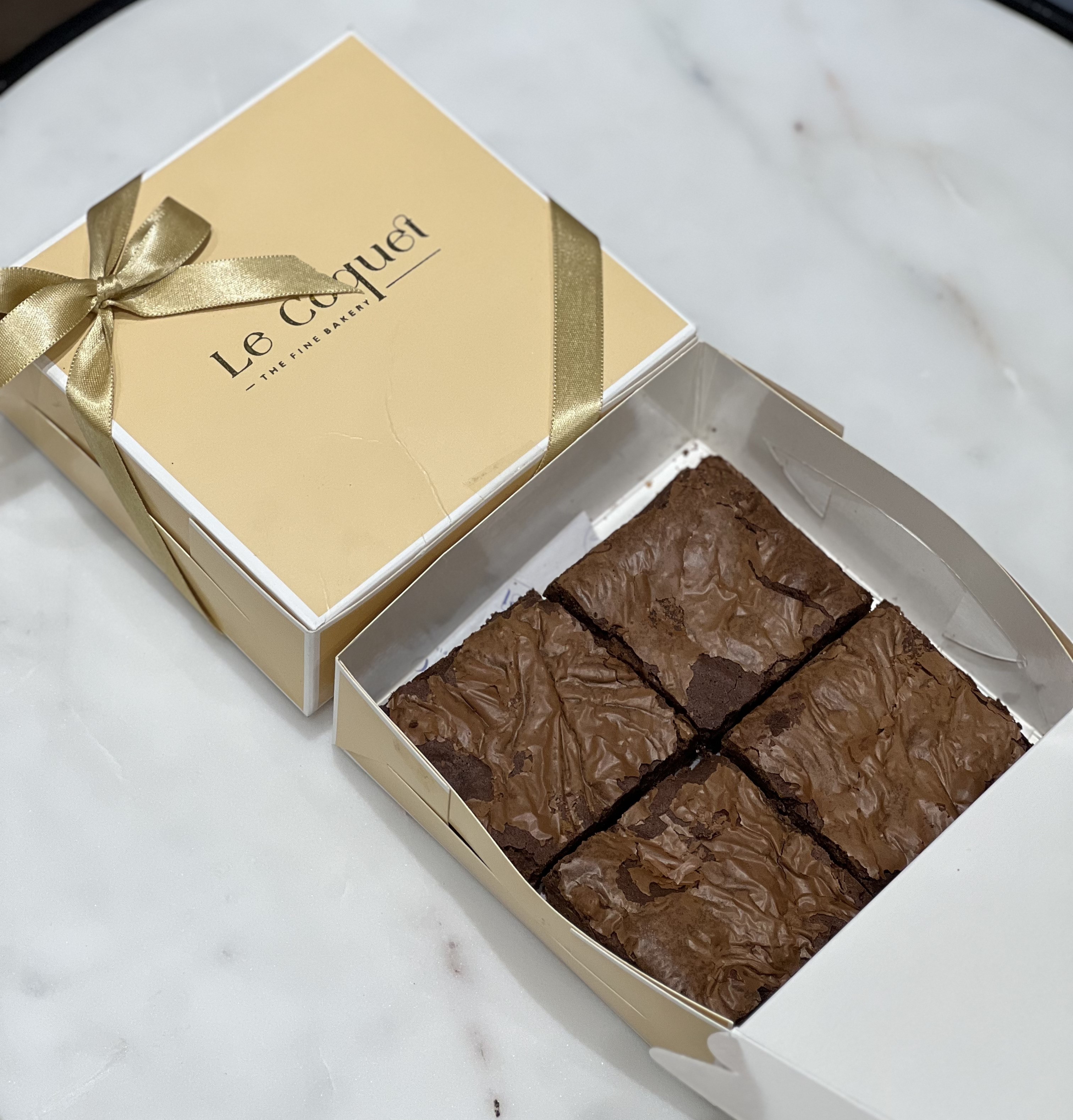 One Box of 4 Brownies, One Jar of Cookies, One Jar of Biscotti (Packed in a large hard gold foiled box)
